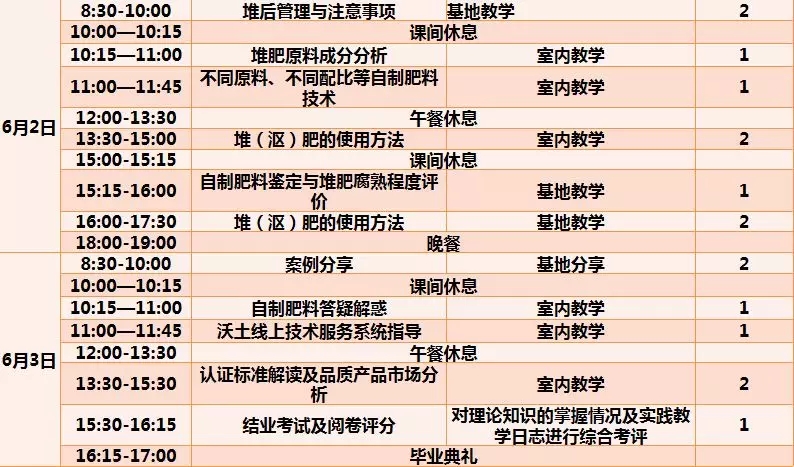 课程考核合格,掌握肥料制作、施用方法,整个堆肥操作技术记录完整(原材料配比、堆肥温、湿度等),堆肥操作评分及格,学会土壤相关技能,学习植保医生平台操作并上传一条生产记录。